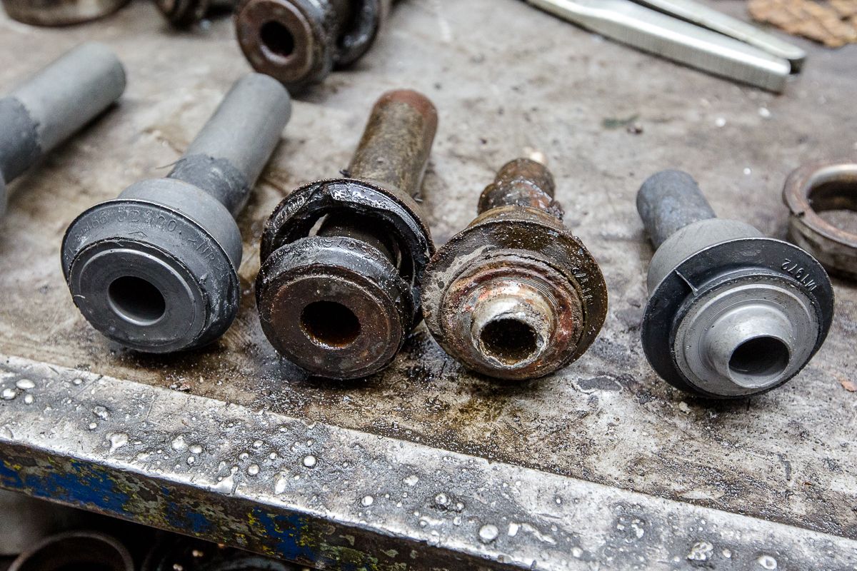 Попутно можем поменять и другие детали. Втулки стабилизатора, сайлентблоки, опоры КПП и прочее. Внимательно их осматриваем.